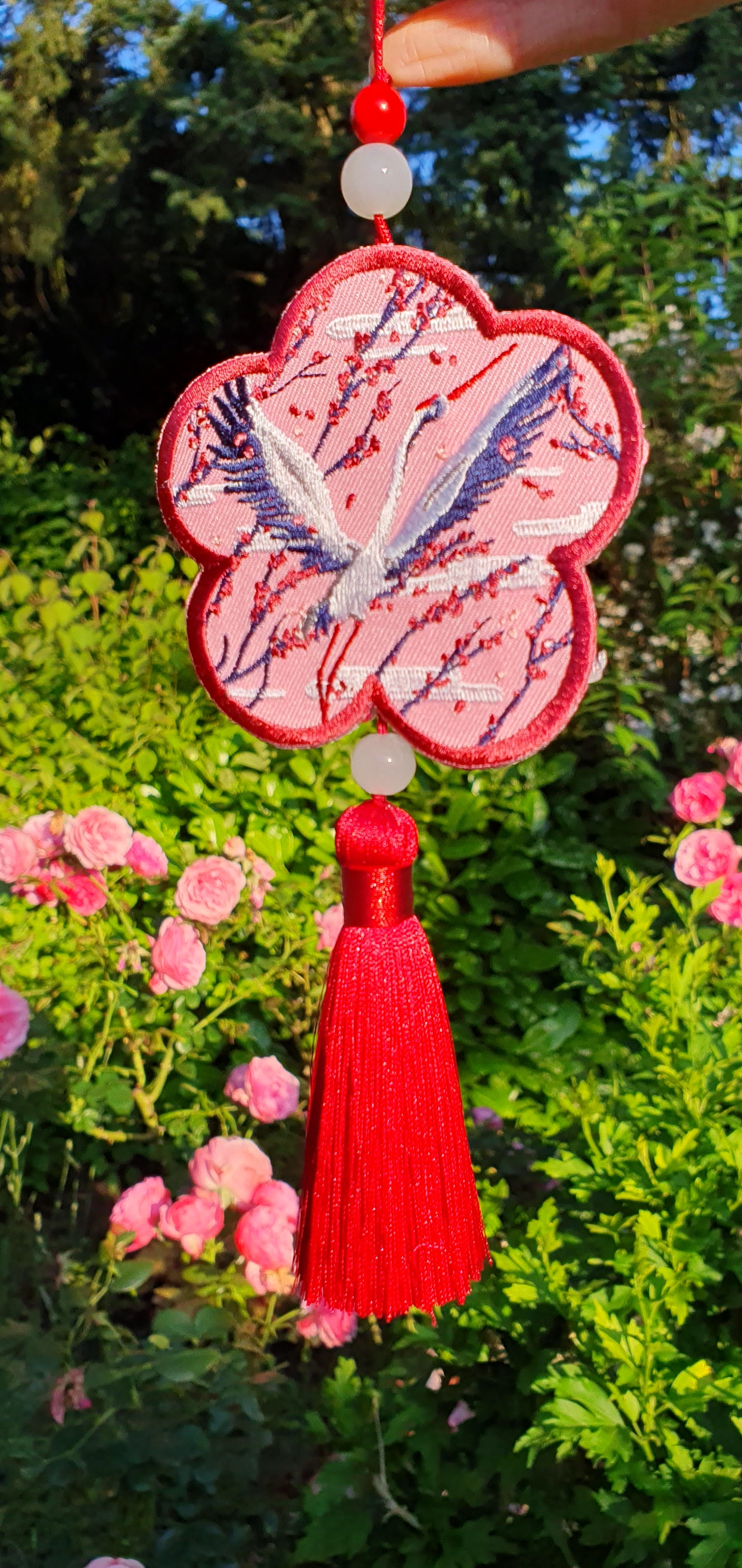 Große Stickerei-Anhänger! Du kannst sie an dein Fenster hängen, an deinen Autospiegel oder einfach an deiner Tasche befestigen. Sie sind auf beiden Seiten bestickt und mit Perlen verziert.